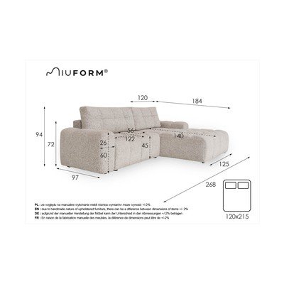 Sklopiva/s prostorom za odlaganjeS desnim kutomSvjetlo smeđaS 3 mjestaŠirina 268 cmDubina 184 cmDubina sjedala 56 cm
