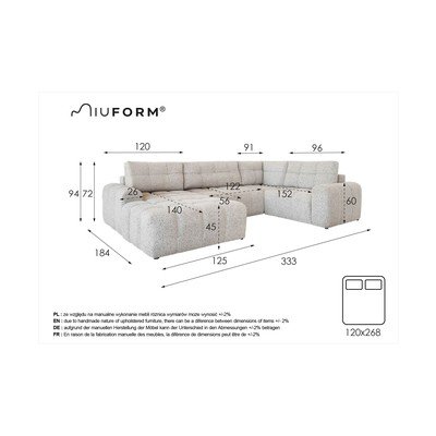 Zbog izuzetno široke ležaljke, ova sofa nudi visoku razinu udobnosti tijekom odmora. Želite li biti sigurni da će vaša sofa biti lijepo usklađena? Preporučamo odabir svih dijelova samo iz ponude pojedinačnih modula. Jedino na taj način osiguravamo ujednačenu nijansu boje cijelog sklopa. Ako kombinirate gotove setove s zasebnim modulima, njihove se korice mogu malo razlikovati u boji. Međutim, ako kupite cijeli set, možete biti sigurni da će nijansa biti ujednačena.