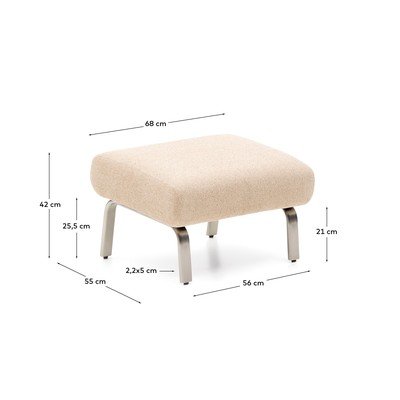 Noge od brušenog nehrđajućeg čelika promjera 1,8 mm imaju elegantno zaobljen oblik i tabureu daju moderan i stabilan oslonac. Sjedište nudi srednju čvrstoću, idealnu za svakodnevnu upotrebu. To je postignuto kombinacijom traka, opruga i slojeva pjene visoke gustoće (35 kg/m³ i 40 kg/m³), koji osiguravaju čvrstoću, izdržljivost i izvrsnu udobnost.