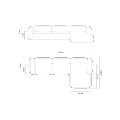 BaršunastiS desnim kutom/s ležaljkomTamno plavaS 4 mjestaŠirina 330 cm