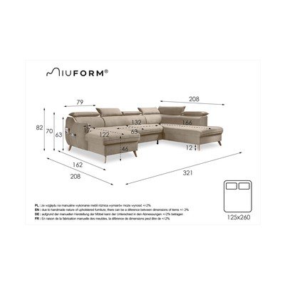 BaršunastiPodesiva/sklopiva/s prostorom za odlaganjeS desnim kutom/u obliku slova "U"Vodootporna/pogodna za kućne ljubimceTamno sivaOstaliŠirina 321 cmDubina 208 cmDubina sjedala 63 cm