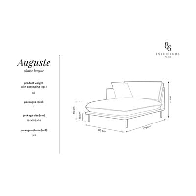 Napravite mjesto za opuštanje kod kuće i započnite svoju omiljenu knjigu. Ležaljka Auguste marke Interieurs 86 impresionira svojim elegantnim izgledom nadopunjenim metalnom bazom. Zajedno stvaraju moderan dizajn koji možete lako uskladiti sa svojim interijerom. Ugodan je na dodir, a ujedno i dovoljno izdržljiv. Mat baršunastu površinu nadopunjuje hidrofobni sloj, zahvaljujući kojem se nenamjerno proliveno piće ne upija unutra.
