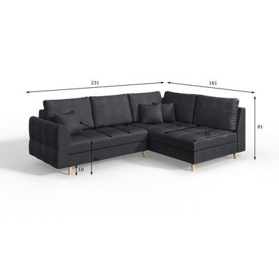 S desnim kutom/u obliku slova L, tamno siva, s 3 mjesta, širina 231 cm