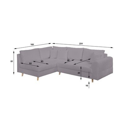 Od bouclé tkanine, s lijevim kutom/u obliku slova L, siva, s 3 mjesta, širina 231 cm