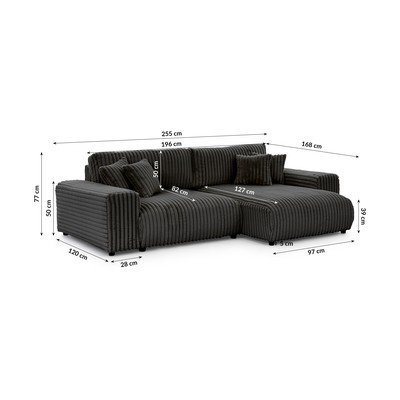 Od samta, sklopiva/s prostorom za odlaganje, s desnim kutom, tamno siva, vodootporna/otporna na mrlje, s 3 mjesta, širina 255 cm