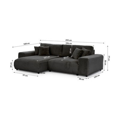 Od samtaSklopiva/s prostorom za odlaganjeS lijevim kutomTamno sivaVodootporna/otporna na mrljeS 3 mjestaŠirina 255 cm