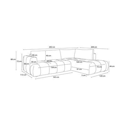 Sklopiva/s prostorom za odlaganje, s desnim kutom/u obliku slova L, tamno siva, s 4 mjesta, širina 282 cm