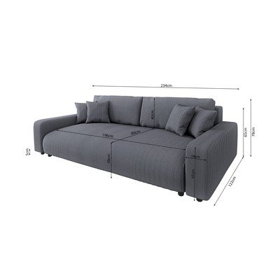 Od samta, sklopiva/s prostorom za odlaganje, tamno siva, s 3 mjesta, širina 234 cm