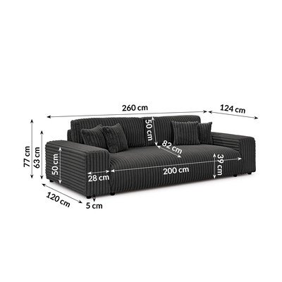 Od samta, sklopiva/s prostorom za odlaganje, tamno siva, vodootporna/otporna na mrlje, s 3 mjesta, širina 260 cm