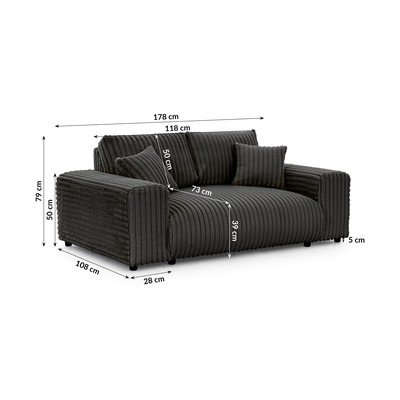Od samta, vodootporna/otporna na mrlje, tamno siva, s 2 mjesta, širina 178 cm, dubina 108 cm, dubina sjedala 73 cm