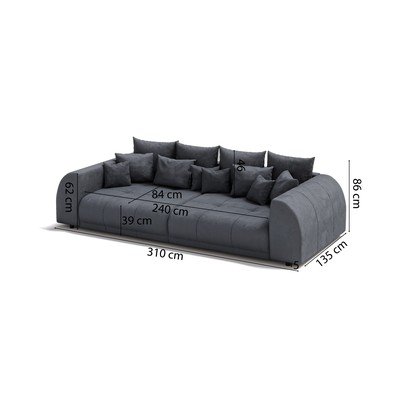 Tamno siva sofa od samta 310 cm Vanessa – Ropez