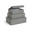 Set se sastoji od 3 kutije koje se mogu umetnuti jedna u drugu i imaju preklopne poklopce s magnetskim zatvaranjem.