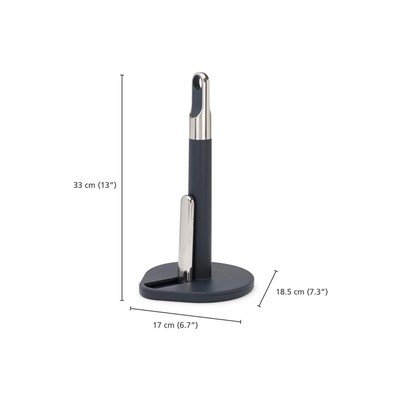 Držač papirnatih ručnika vrhunske kvalitete Hold brenda Joseph Joseph dizajniran je za maksimalnu praktičnost i stabilnost u kuhinji. Zahvaljujući otežanoj podlozi, čvrsto drži na mjestu. Njegova opružna zatezna ruka sprječava spontano odmotavanje role i istovremeno omogućuje jednostavno trganje ručnika jednom rukom. Vrh držača opremljen je praktičnom ručkom koja olakšava nošenje. Držač je prikladan za role kuhinjskih ručnika širine do 140 mm.