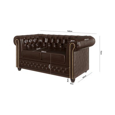 Sofa YorkOd imitacije kože, za spavanje/sklopiva, chesterfield, tamno smeđa, vodootporna/pogodna za kućne ljubimce/otporna na mrlje, s 2 mjesta, širina 148 cm