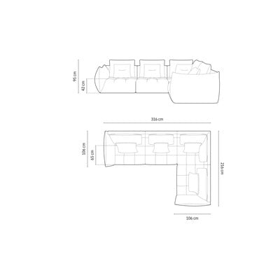 S desnim kutom/u obliku slova L, zelena, ostali, širina 316 cm, dubina 216 cm, dubina sjedala 65 cm