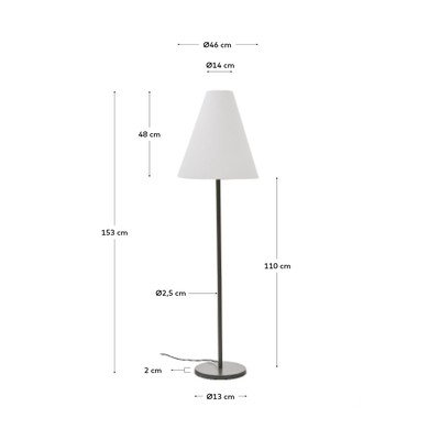 Podna lampa Navat brenda Kave Home unosi elegantan, a opet minimalistički stil u interijer. Svjetiljka je izrađena od metala s tamnozelenom završnom obradom i nadopunjena je bijelim platnenim sjenilom u obliku stošca. Podna lampa je kompatibilna s E27 žaruljom maksimalne snage 40 W. Žarulja nije uključena.