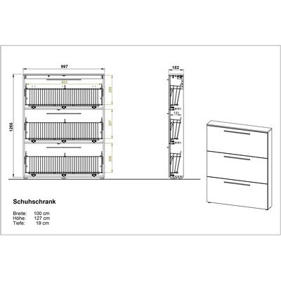 Ormarić za cipele WildomarPreklopni, u dekoru hrasta, od iverice, završna obrada: Melamin, antracitno sivi/u prirodnoj boji, širina 100 cm, visina 129 cm, dubina 19 cm