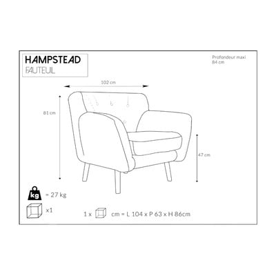 Hampstead kolekcija sofa i fotelja ističe se prije svega svojom elegancijom. Sjedit će uz moderan interijer i klasičnije komade. Suptilna paleta boja omogućuje vam kombiniranje pojedinačnih komada tako da savršeno odgovaraju vašem životnom stilu. Dizajn brend Cosmopolitan brine o svakom detalju. Za presvlaku bira kvalitetnu i vrlo izdržljivu tkaninu, noge su izrađene od punog drveta, a punjenje jastuka je od mekog poliuretana. Uz maksimalnu pozornost posvećenu detaljima, Cosmopolitan design jedan je od vodećih proizvođača kvalitetnog namještaja.
