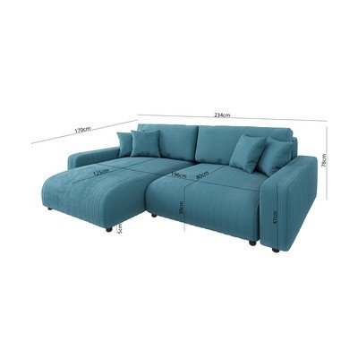 Od samta, sklopiva/s prostorom za odlaganje, s desnim kutom/s lijevim kutom/promjenjiva/s ležaljkom, tirkizna, s 3 mjesta, širina 234 cm