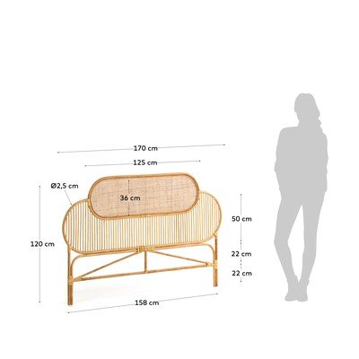 Uzglavlje LalitaOd ratana, završna obrada: lak, samostojeće, u prirodnoj boji, 170x120 cm