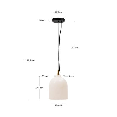 Viseća lampa Shenli brenda Kave Home impresionira svojim minimalističkim dizajnom s alabasternim sjenilom promjera 15 cm. Alabaster je prirodni materijal koji stvara jedinstvene svjetlosne efekte i tople sjene koje će vašem interijeru dati ugodnu atmosferu. Zahvaljujući korištenju prirodnih materijala, svaki komad je originalan sa svojom teksturom i nijansom. Svjetiljka je kompatibilna s E27 žaruljom maksimalne snage 25 W. Žarulja nije uključena.