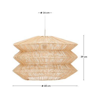 Viseća lampa Dakit brenda Kave Home unijet će ugodnu atmosferu u vaš interijer. Sjenilo je ručno tkano od ratana, što mu daje jedinstven oblik sa slojevitim, harmonikastim izgledom. Svjetiljka ne samo da osvjetljava prostor, već služi i kao elegantan dodatak. Imajte na umu da grlo i žarulja nisu uključeni.