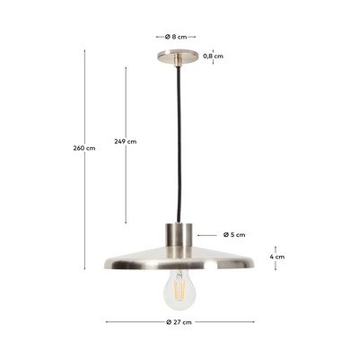 Viseća svjetiljka Nuvira brenda Kave Home ističe se svojim elegantnim i funkcionalnim dizajnom. Njena konstrukcija od satenskog čelika dodat će moderan i sofisticiran dodir svakoj prostoriji. Iznimno mekani tekstilni kabel daje svjetiljci dašak kvalitete i diskretno će se uklopiti u razne interijere. Kompatibilna je s E27 žaruljom maksimalne snage 40 W, koja nije uključena.