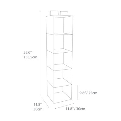 Organizator za garderobu Soft StorageViseći, tekstilni, sivi, 30x30 cm, visina 133,5 cm