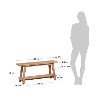 Od masivnog drvetaU prirodnoj bojiNosivost 130 kgŠirina 100 cmDubina 32 cmVisina 46 cm