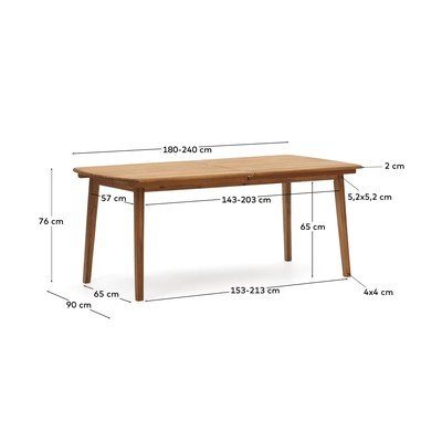 Od masivnog bagrema, proširiv, u prirodnoj boji, 90x180 cm, duljina rasklopljenog 240 cm