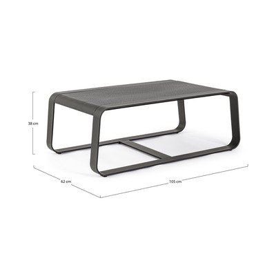Aluminijski vrtni stolić za kavu Merrigan brenda Bizzottoto unijet će bezvremensku eleganciju na vašu terasu. Njegov minimalistički dizajn s čistim linijama i sivom završnom obradom lako se kombinira s različitim stilovima vrtnog namještaja. Stol dimenzija 62 x 105 cm pruža puno prostora za grickalice i ukrase, a zahvaljujući izdržljivom aluminijskom okviru, služit će vam mnogo sezona.