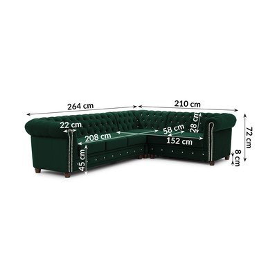 BaršunastiSklopivaChesterfieldS desnim kutom/u obliku slova LZelenaVodootporna/otporna na mrljeS 4 mjestaŠirina 264 cm