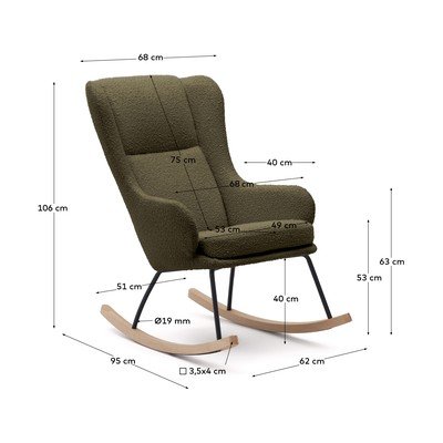 Zelena fotelja za ljuljanje od bouclé tkanine Maustin – Kave Home