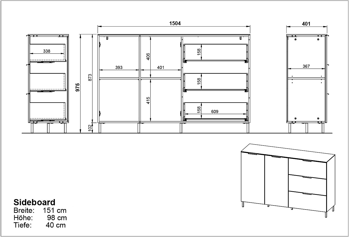 U mat dekoru, od iverice, završna obrada: Melamin, u mat dekoru, zelena, širina 151 cm, visina 98 cm, dubina 40 cm