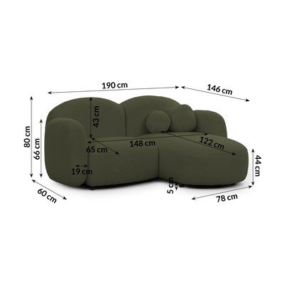 Zelena kutna garnitura od bouclé tkanine (s desnim kutom/s ležaljkom) Orbit – Ropez