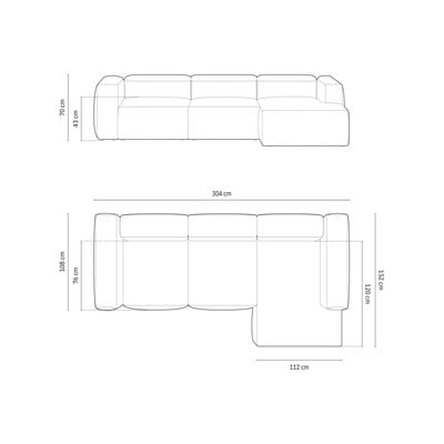 Od samta, s desnim kutom/s ležaljkom, zelena, s 4 mjesta, širina 304 cm
