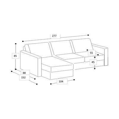 Od šenila, s lijevim kutom/s ležaljkom, zelena, s 4 mjesta, širina 277 cm