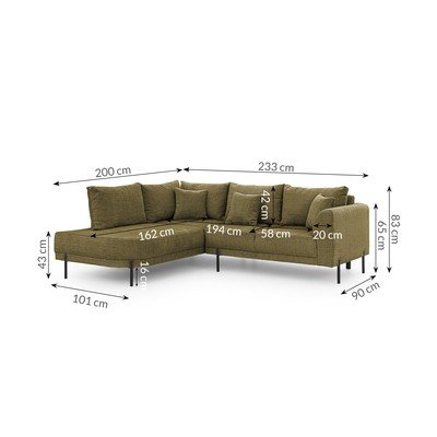Od šenilaS lijevim kutom/u obliku slova LZelenaPogodna za kućne ljubimce/otporna na mrljeS 4 mjestaŠirina 233 cm