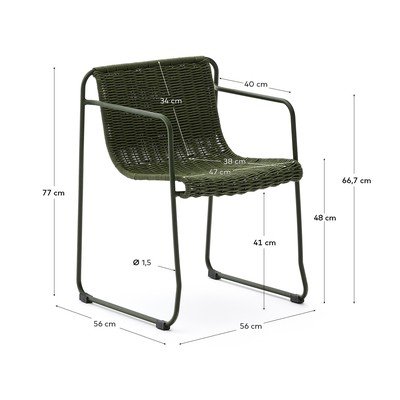 Stolica Maurinabrenda Kave Home može se pohvaliti dizajnom koji je Yonoh Studio kreirao ekskluzivno za Kave Home. Sjedalo i naslon izrađeni su od ručno tkanog užeta otpornog na UV zračenje, što osigurava dugotrajnost čak i uz čestu vanjsku upotrebu. Konstrukcija stolice izrađena je od pocinčanog čelika, koji je otporan na koroziju i hrđu, što je čini izdržljivijom od običnog čelika. Zahvaljujući tim svojstvima, stolica Maurina prikladna je za 100% vanjsku upotrebu. Može se slagati radi lakšeg skladištenja, što pomaže u uštedi prostora.