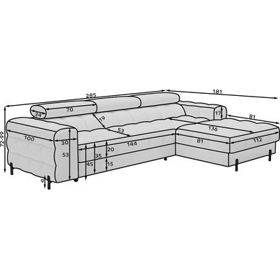 Bež baršunasti sklopiva/s prostorom za odlaganje kutna garnitura (s desnim kutom/s ležaljkom) Felro – ELTAP