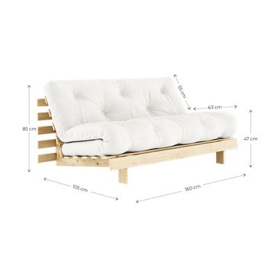 Bezvremenski i svjež izgled koji će unijeti boho stil čak i u najudobnije interijere. Ovo je kauč Roots tvrtke Karup Design s trendi smeđim lakiranim završetkom. Zahvaljujući varijabilnom dizajnu, može se pretvoriti u dva različita komada namještaja odjednom. Dok je Roots u osnovnom položaju udobna sofa, rasklopljena dobivate bračni krevet u punoj veličini dimenzija 160 x 200 cm.