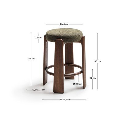 Barska stolica Granite brenda Kave Home postat će moderan i praktičan dodatak vašoj kuhinji ili kućnom baru. Njena konstrukcija izrađena je od masivnog jasenovog drva, koje dolazi iz šuma kojima se upravlja prema principima odgovornog šumarstva, što dokazuje FSC™ 100% certifikat. Udobno okruglo sjedalo presvučeno je dvobojnom navlakom od šenila s prepoznatljivom strukturom. Tkanina je izrađena od recikliranog poliestera od dobavljača s Global Recycled Standard certifikatom, što osigurava manju potrošnju resursa i primarnih materijala. Osim toga, ima OEKO-TEX® STANDARD 100 certifikat, koji jamči ekološki sigurnu i odgovornu proizvodnju. Dizajn stolice nadopunjuje praktični kružni oslonac za noge, koji osigurava veću udobnost pri sjedenju.