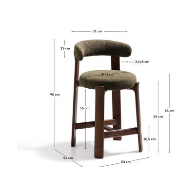 Granitna barska stolica brenda Kave Home elegantan je i praktičan dodatak modernoj kuhinji ili blagovaonici. Njezina konstrukcija izrađena je od masivnog jasenova drva, koje dolazi iz šuma kojima se upravlja u skladu s načelima održivog šumarstva, što dokazuje FSC™ 100% certifikat. Sjedalo i zaobljeni naslon presvučeni su tkaninom prepoznatljive strukture, koja je izrađena od recikliranog poliestera. Ovaj materijal dolazi od dobavljača s Global Recycled Standard certifikatom, koji jamči manju potrošnju resursa i primarnih sirovina. Osim toga, tkanina zadovoljava OEKO-TEX® STANDARD 100 certifikat, koji potvrđuje ekološki sigurnu i odgovornu proizvodnju.