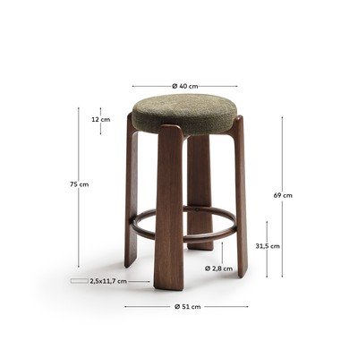 Barska stolica Granite brenda Kave Home postat će moderan i praktičan dodatak vašoj kuhinji ili kućnom baru. Njena konstrukcija izrađena je od masivnog jasenovog drva, koje dolazi iz šuma kojima se upravlja prema principima odgovornog šumarstva, što dokazuje FSC™ 100% certifikat. Udobno okruglo sjedalo presvučeno je dvobojnom navlakom od šenila s prepoznatljivom strukturom. Tkanina je izrađena od recikliranog poliestera od dobavljača s Global Recycled Standard certifikatom, što osigurava manju potrošnju resursa i primarnih materijala. Osim toga, ima OEKO-TEX® STANDARD 100 certifikat, koji jamči ekološki sigurnu i odgovornu proizvodnju. Dizajn stolice nadopunjuje praktični kružni oslonac za noge, koji osigurava veću udobnost pri sjedenju.