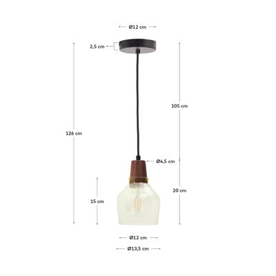 Viseća lampa Silex iz Kave Homea spaja eleganciju zelenog stakla i toplinu orahovog drva. Svjetiljka promjera 13 cm prikladna je za žarulje s grlom E27 maksimalne snage 40 W. Žarulja nije uključena u pakiranje.