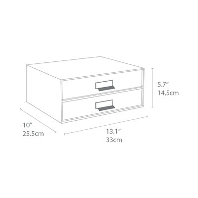 Izrađen je od čvrstog recikliranog kartona obloženog papirom. Dolazi s držačem naljepnica za jednostavno i brzo prepoznavanje sadržaja i elegantnim kožnim ručkama za jednostavno rukovanje ladicama. Gumene nožice na dnu sprječavaju klizanje i grebanje namještaja.