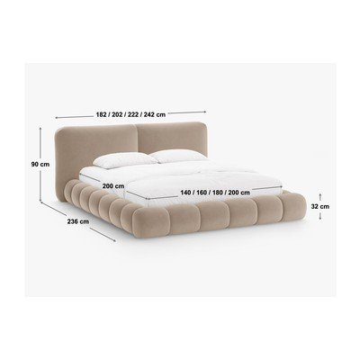 Bračni krevet Solange brenda Micadoni. Njegov tapecirani dizajn s mekim oblicima dodat će udobnost spavaćoj sobi i ponuditi praktičan prostor za pohranu.
