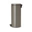 Kanta za otpad NewIcon brenda Brabantia elegantan je i praktičan dodatak svakom kućanstvu. Mehanizam s nagibom omogućuje higijensko i jednostavno otvaranje kante. Kanta od 30 litara izrađena je od visokokvalitetnog čelika i ima poklopac koji se tiho zatvara. Unutarnja plastična posuda je uklonjiva i ima otvore za ventilaciju. Poklopac kante čvrsto prianja, sprječavajući širenje mirisa. Za lakše nošenje, kanta ima ručku u šarki poklopca. Neklizajuća baza i ugrađeni blok protiv prevrtanja osiguravaju stabilnost i pomažu u zaštiti poda od ogrebotina. Paket također uključuje uzorak Brabantia PerfectFit vrećica (šifra G).