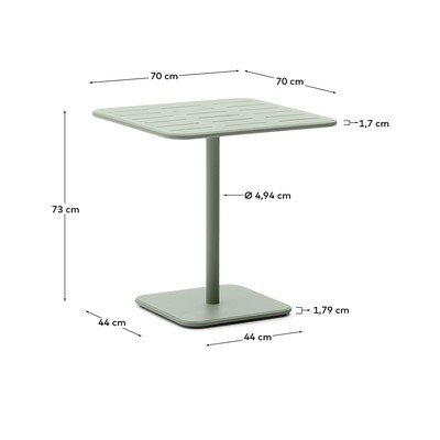Blagovaonski stol Brai brenda Kave Home praktičan je i elegantan dodatak vašem domu i vrtu. Njegova četvrtasta ploča s uzdužnim utorima leži na čvrstoj središnjoj nozi i stabilnoj podlozi. Izrađen je od pocinčanog čelika, koji je poznat po svojoj visokoj otpornosti na abraziju i koroziju, što jamči dulji vijek trajanja u usporedbi s običnim čelikom. Zbog toga je stol prikladan za unutarnju i vanjsku upotrebu. Kako bi zaštitio pod od oštećenja ili ogrebotina, stol je opremljen podesivim plastičnim štitnicima za noge.