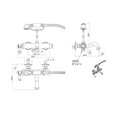 Ova zidna mjedena slavina dizajnirana je za dva izlaza i stoga se može spojiti na, na primjer, ručni i gornji tuš. Možete jednostavno mijenjati između njih pomoću tlačne sklopke. Isporučuje se zajedno s ručnim tušem i crijevom.